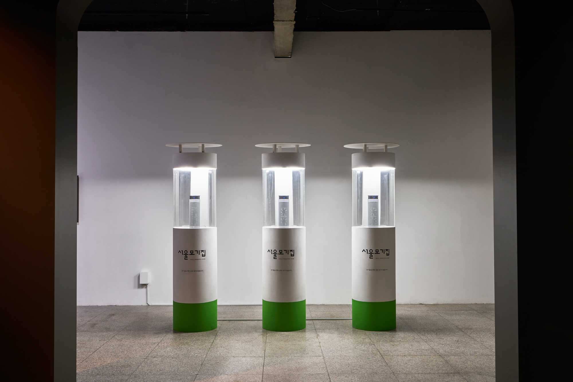 모기들이 살아 남을 수 없는 겨울철이 되면 시설물이 일종의 쉘터가 되어 모기의 알을 배양한다. 실내공간에 설치 된 시설물은 적정 온도를 유지하며 올챙이, 송사리, 인류 등의 외부 위협 요소를 차단하여 장구벌레 알이 건강하게 성장할 수 있게 돕는다. 어디까지가 허구인지 모호하게 블러 처리된 이 절차에는 중단문이 없기에 가시 범위 밖에서도 모기 배양이 (어쩌면 영원토록)반복되리라는 픽션적 함수를 형성한다.